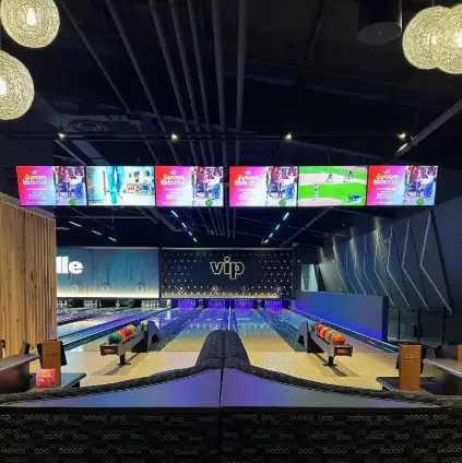 We recently provided a client with a bold new AV integration concept to enhance their entire facility. Our solution ensured unobstructed sightlines to scoring and media panels. Furthermore, we complemented the visuals with immersive, high-fidelity audio. This created a unique hybrid “club-meets-bowling” experience for their guests.